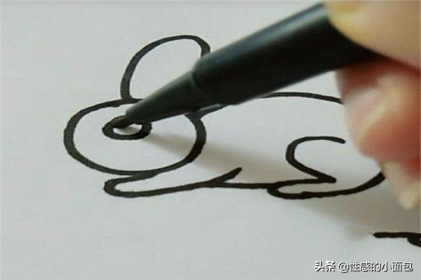 4、在后腿的左侧画一个反写的3,表示后背和后腿。腿画好后,再画上兔子的尾巴,在兔子左侧画一个0,表示尾巴,可爱的兔子就画完了。