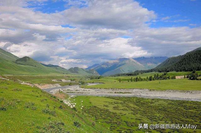 新疆一个多数人向往的地方。新疆除了喀纳斯,赛里木湖,那拉提之外,还有神秘的百里画廊唐布拉。唐布拉百里画廊的起点和终点,是从唐布拉避暑山庄到乔尔玛这段路。从尼勒克县出发向东南行进,越过黑蜂自然保护区种蜂场一直到乔尔玛,喀什河两岸丰茂的山地草原和河谷草原。都属于唐布拉风景区。这里蓝天、白云、绿草茵茵、流泉滚滚、溪水淙淙,云衫密林、苍翠挺拔,冰峰雪岭倒影水中,喀什河流横贯全境,一步一景,如诗如画,美不胜收。